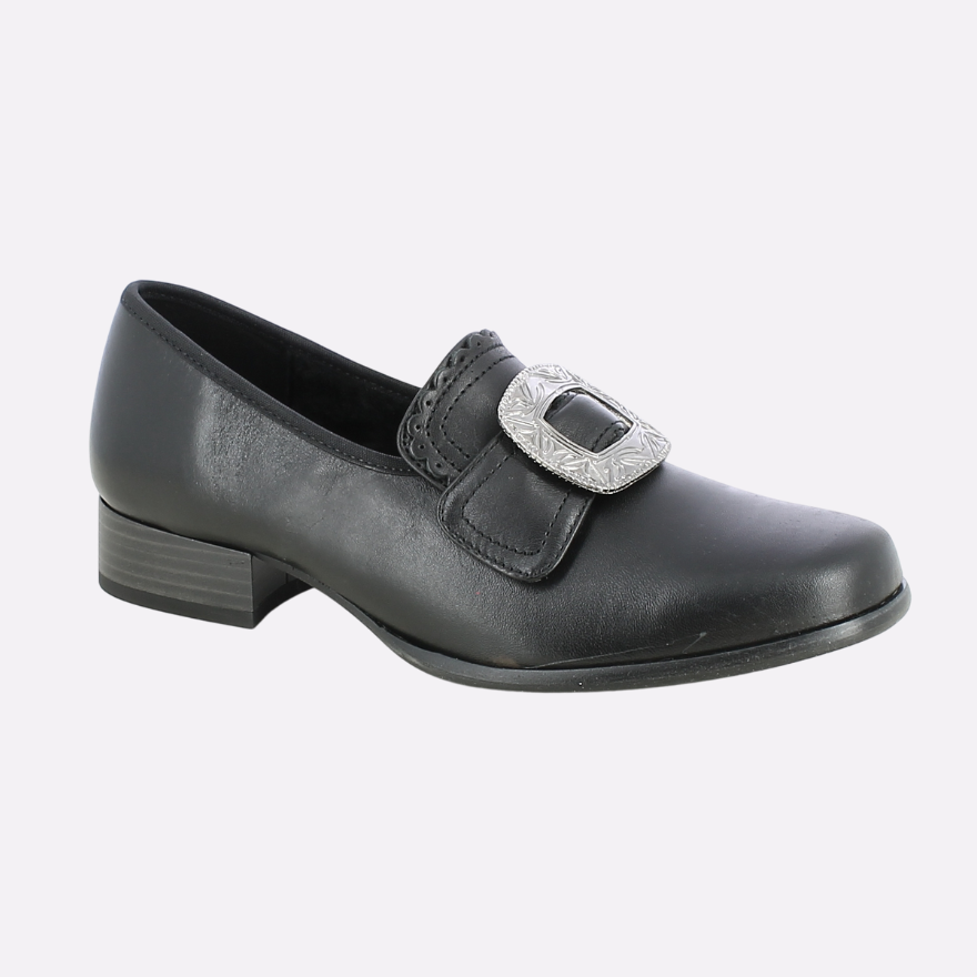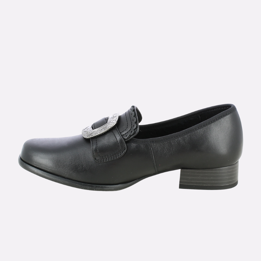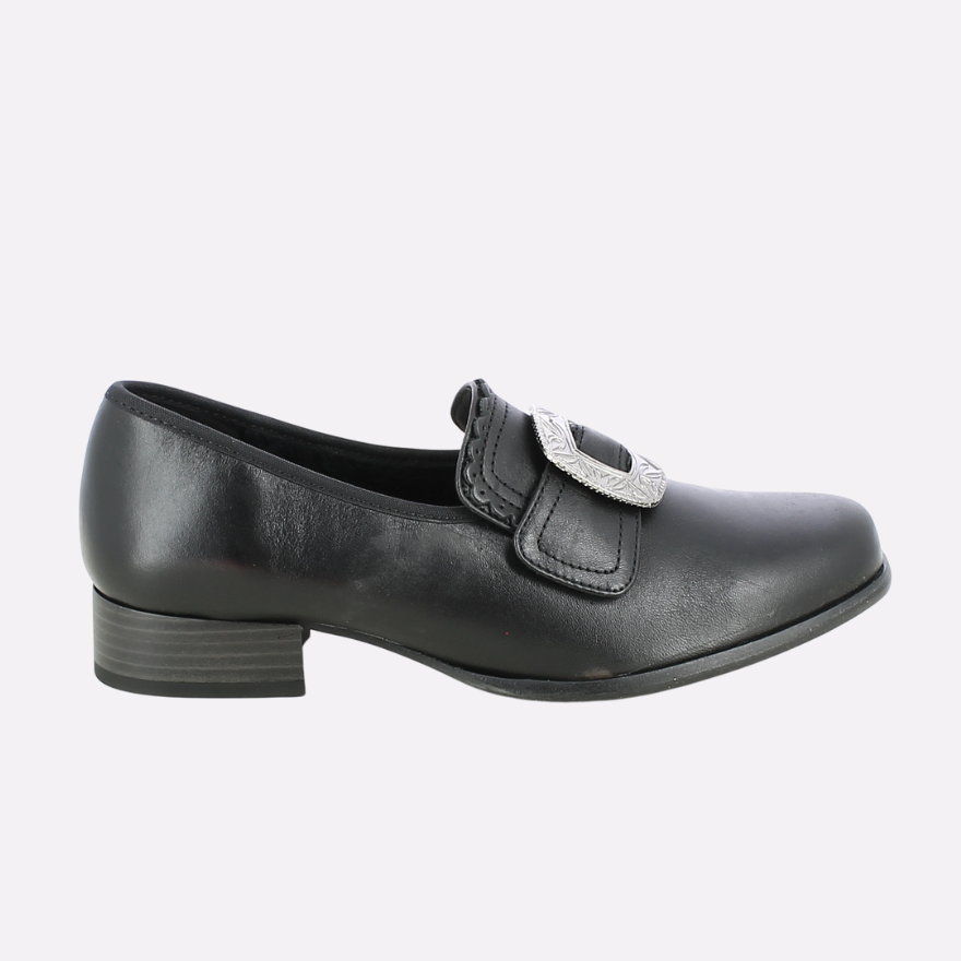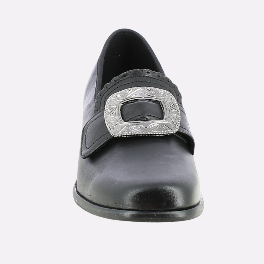 Saga er en tradisjonell bunadsko i ekte skinn både innvendig og utvendig, med robust gummisåle som gir godt grep og lang levetid. Det naturlige skinnmaterialet former seg etter foten over tid for optimal komfort, år etter år.