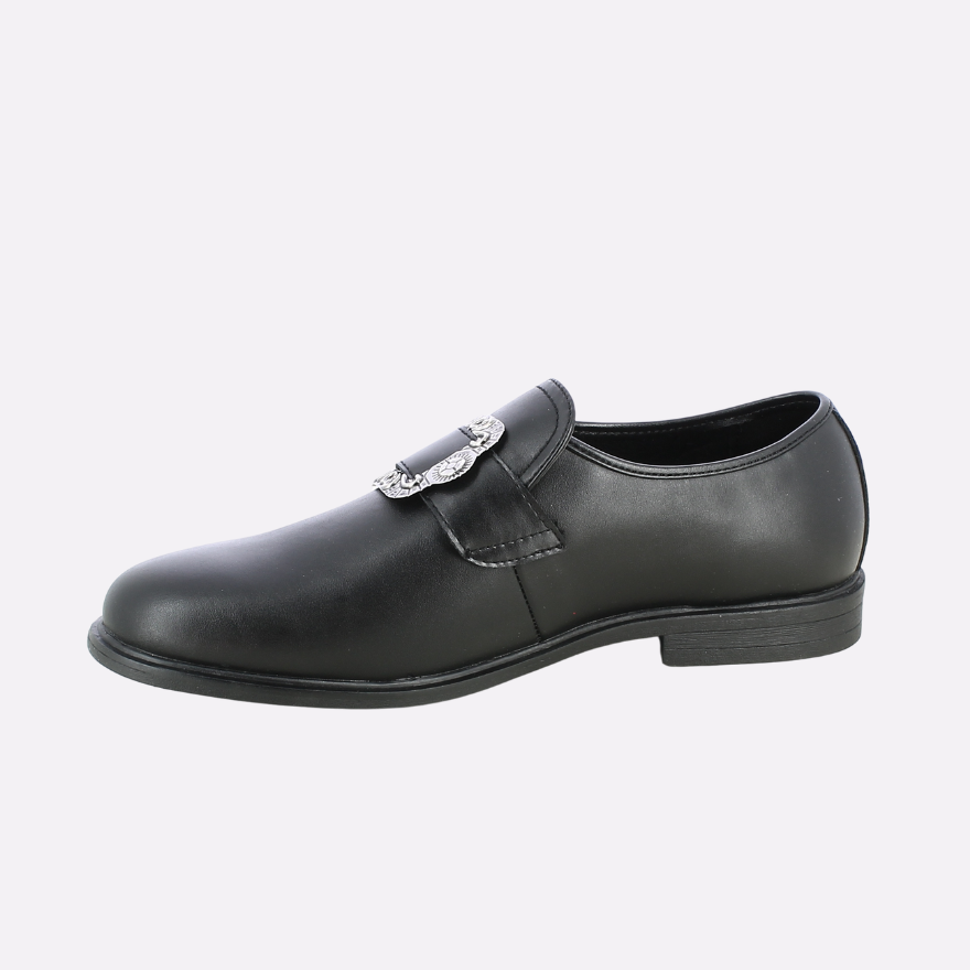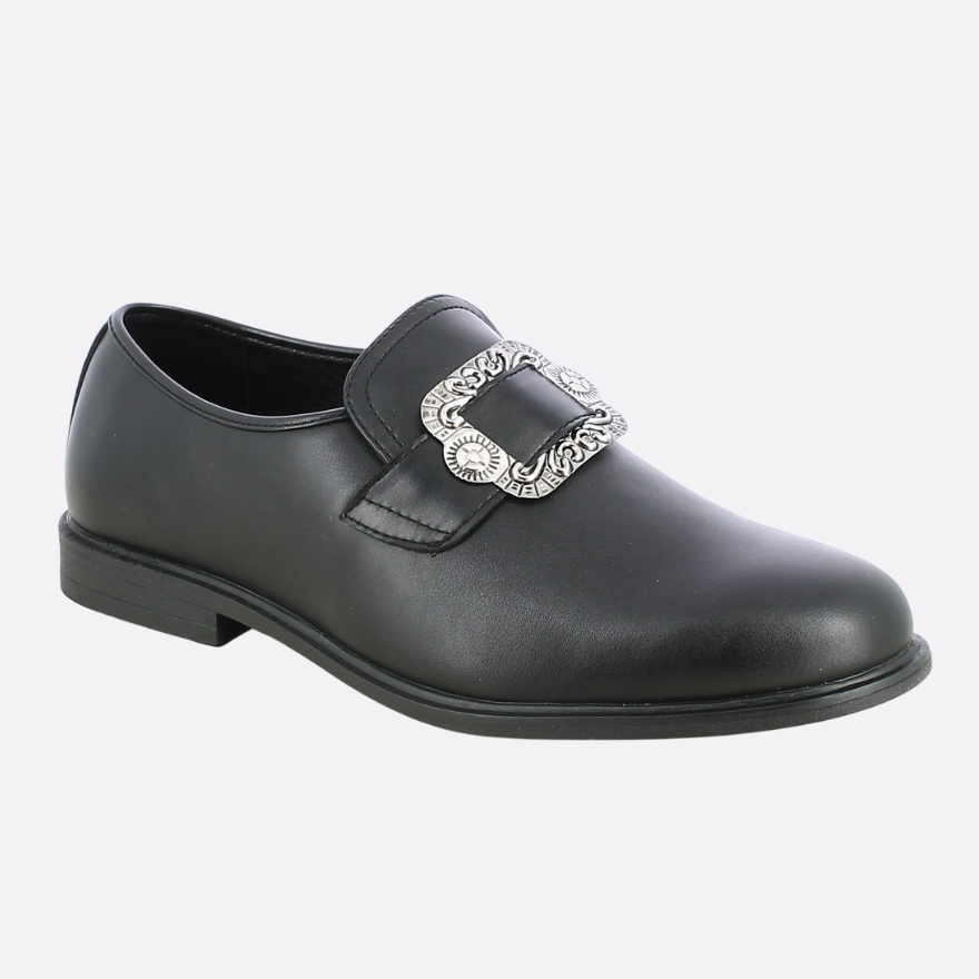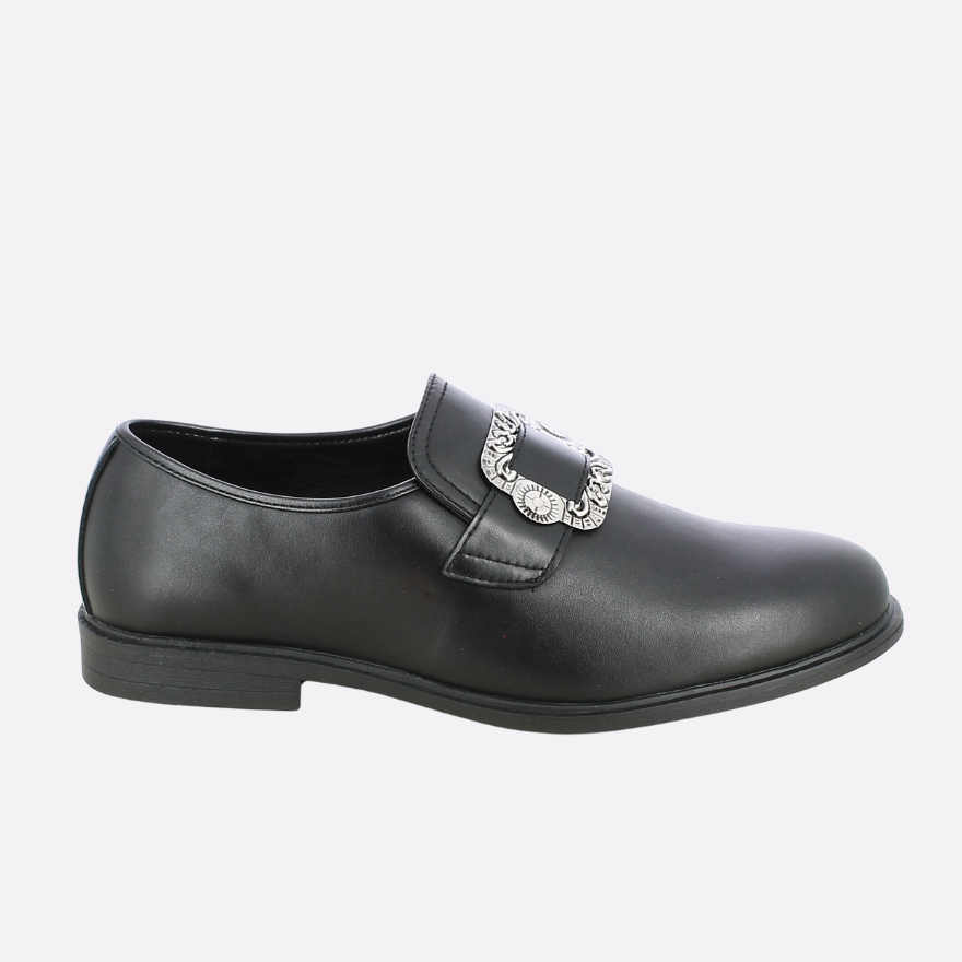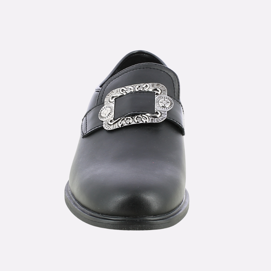 Klassisk bunadsko til herre i vedlikeholdsfritt kunstskinn. Lav hel gir stabilitet og komfort selv under lange markeringer.