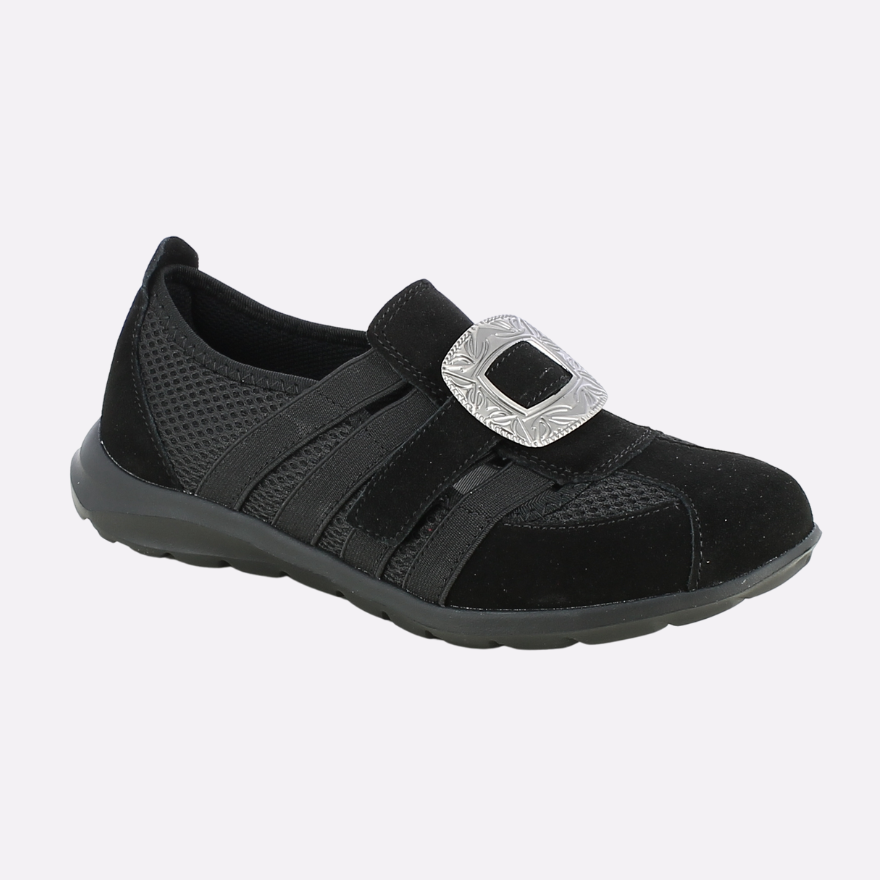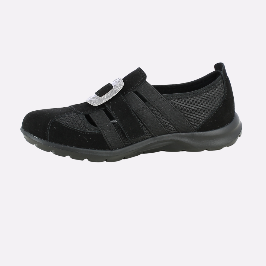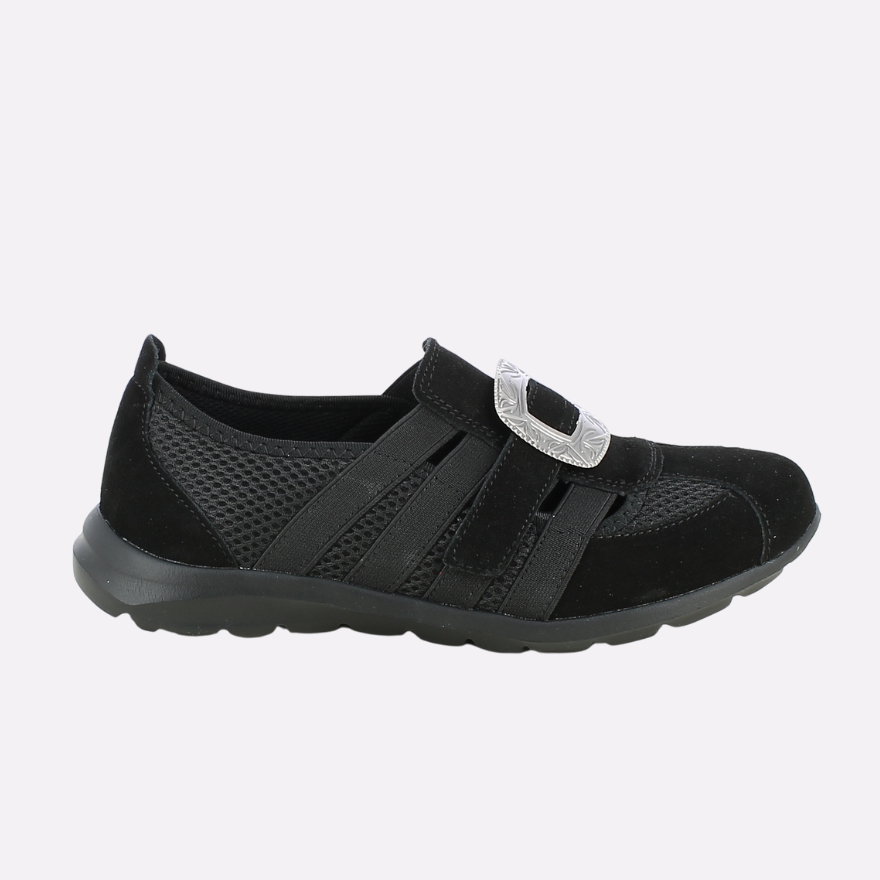 Ventilert bunadsko med full demping i phylon-sålen, mesh-overdel og elastiske detaljer for maksimal pusteevne og bevegelighet. Den avtagbare bunadspennen gjør at du enkelt kan bytte mellom fest og fritid uten å gå på kompromiss med tradisjonelt utseende.